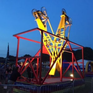 À 7,5 mètres de haut, deux participants pédalent sur des vélos suspendus pour effectuer un looping complet. 100 % mécanique, zéro énergie électrique, accessible dès 9 ans. L’effet de compétition à deux garantit rires et émulation, tout en restant respectueux de l’environnement.