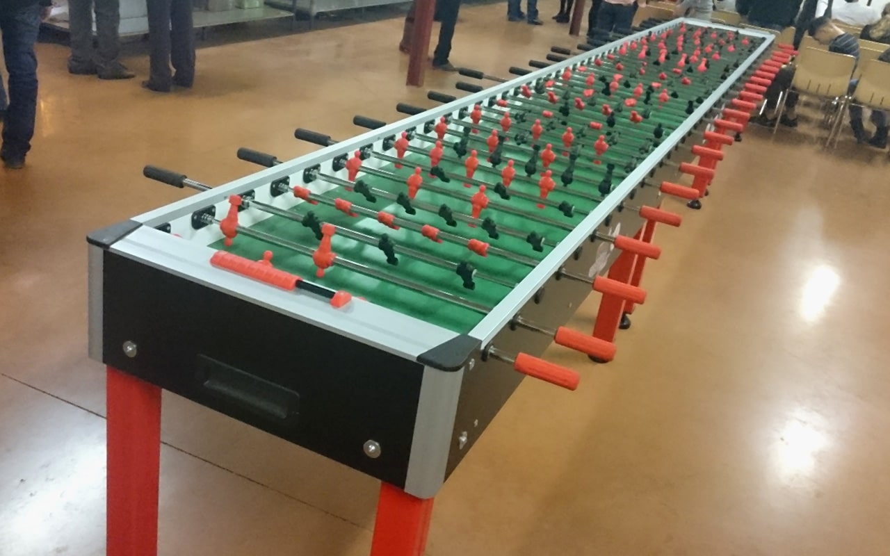 Le Babyfoot se compose de deux modules (2.45 x 1.1 x 0.95 m) et d’un module central (2.55 x 1.1 x 0.95 m). Il est conçu pour être installé sur un sol plat et propre, que ce soit en intérieur ou en extérieur.