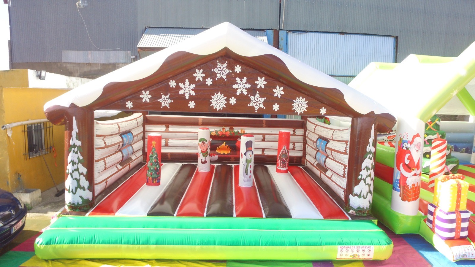 Le Chalet de Noël gonflable s’installe facilement sur tout type de surface plane : herbe, goudron, terre. Il nécessite une alimentation électrique de 220V – 1500W – 16A et peut être utilisé aussi bien en intérieur qu’en extérieur. Son design aux couleurs festives, inspiré des chalets enneigés, crée immédiatement une atmosphère chaleureuse et festive.