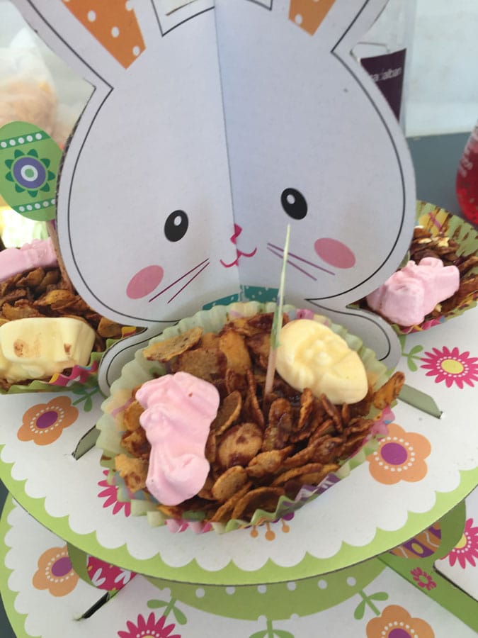 Encadrés par des animateurs, les enfants réalisent eux-mêmes leur nid en mélangeant des corn-flakes croustillants au chocolat fondu. Chaque création est déposée dans une caissette, prête à être décorée… ou dévorée !