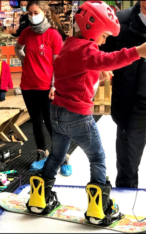 Proposez une initiation snowboard unique et accessible pour les plus jeunes, sans besoin de neige ni de matériel complexe. Un concept qui plaira autant aux enfants qu’aux parents !
