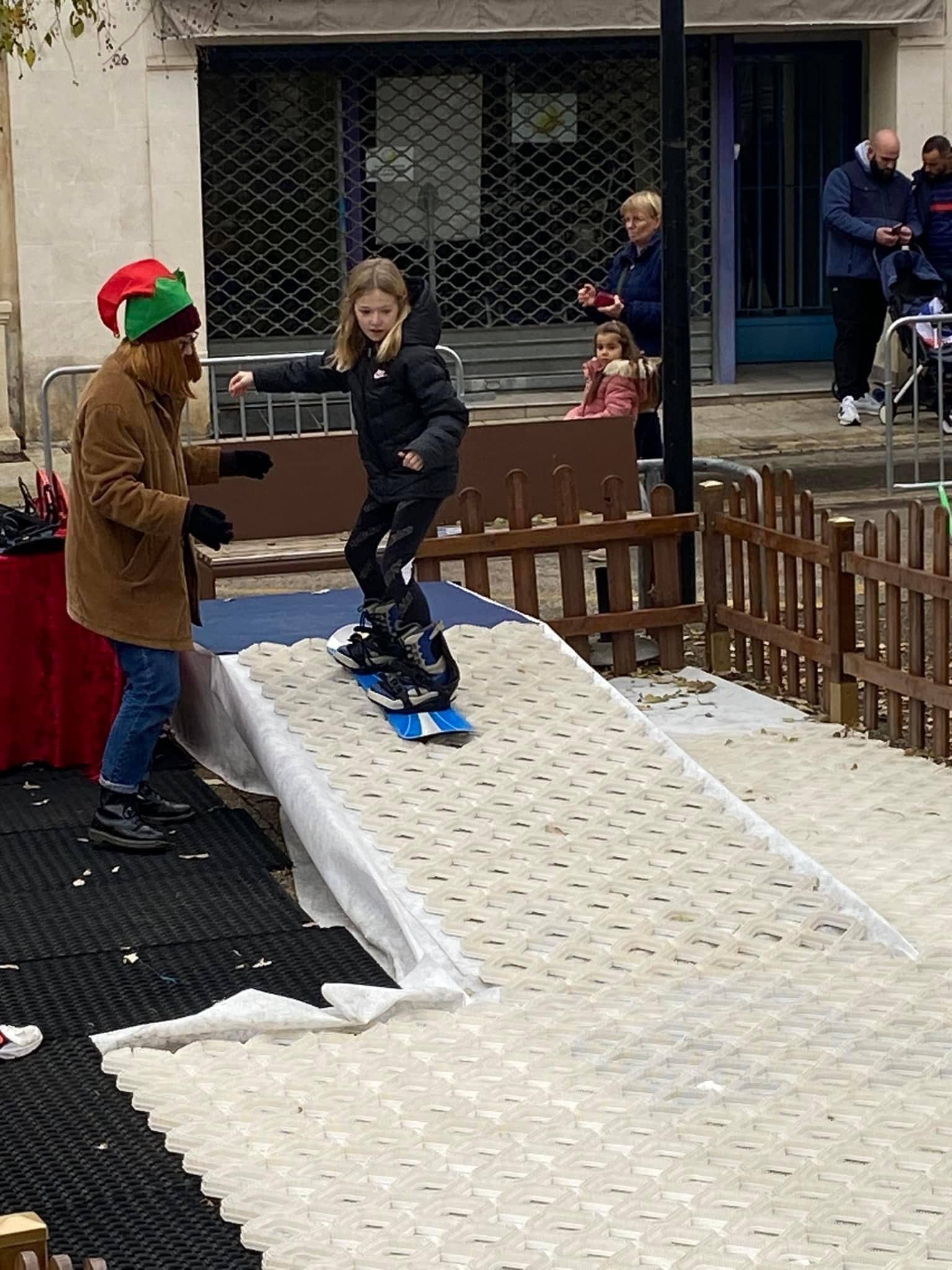 Notre PISTE DE SNOWBOARD synthétique est l’animation parfaite pour initier les enfants de 4 à 8 ans aux joies de la glisse, quelle que soit la saison. Idéale pour vos galeries marchandes, arbres et marchés de Noël, magasins, mairies et autres animations ponctuelles, cette attraction attire et divertit.