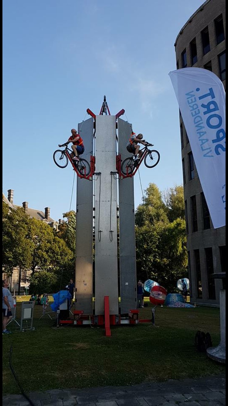 Le Vertical Bike est une attraction sensationnelle où deux participants s’affrontent dans une ascension à vélo de 8 mètres. À force de pédalage, ils doivent grimper le plus vite possible jusqu’au sommet pour décrocher la victoire. Une animation unique en France, parfaite pour les événements sportifs, teambuildings et animations commerciales.